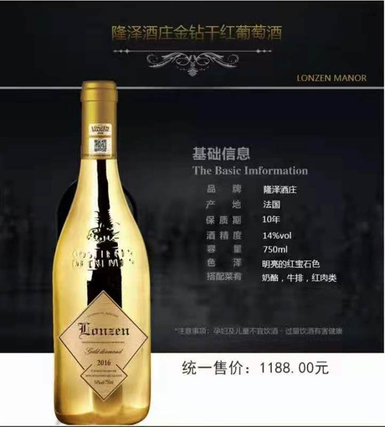 追寻古典Lonzen优雅风格,14度干红葡萄酒,零售价:1188元/瓶。法国进口342条形码,瓶口有防伪标签,假一罚十。精选法国得天独厚的高品质葡萄。柔和易入口,能闻到草莓喝丝丝精致的甘草味,拥有悠长余味的高贵红酒。