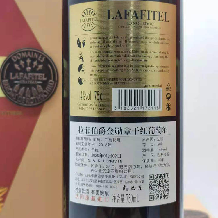 1:法国条形码318开头,中文标左下角有单独红色字体,写着法国原瓶进口,保证百分百纯进口。
